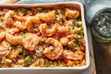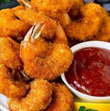 Shrimp battered in flour, coconut flakes, corn starch, salt, onion and garlic powder.