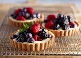 Short crust pastry base filled with Chantilly cream topped with layer of sponge cake and lavishly garnished with an assortment of berries: blackberries,blueberries,raspberries,red currants and strawberries.